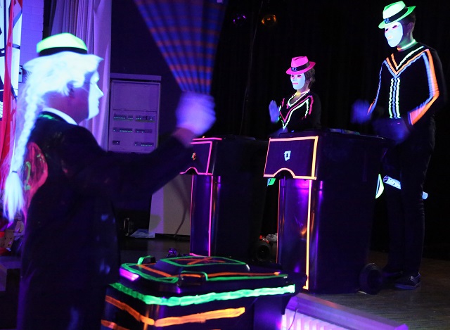 Nach dem offiziellen Teil führte Axel Hesse durch ein buntes Programm, gestaltet von der Theatertruppe des Löschzuges Arnsberg. Viel Beifall gab es für die Auftritte von Zauberer „Magic Mentalist Mark“ (Mark Schroller), ein aufmerksamer Bürger (Oliver Witt) wollte einen Brand melden, hatte aber große Verständigungsschwierigkeiten mit der „Feuerwehr-Hotline“. Beim Finale präsentierten sich alle Aktiven unter der Leitung von Chefdirigent Robin Nissen mit einer spektakulären „Schwarzlicht-Trommler-Show“.