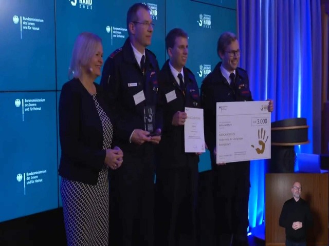 Die Löschgruppe Wennigloh der Feuerwehr Arnsberg hat im Innovationswettbewerb „Helfende Hand“ den vierten Platz in der Kategorie „Innovative Konzepte“ geholt. Bundesinnenministerin Nancy Faeser zeichnete die Gruppe für ihr Projekt „Gesicherte Löschwasserversorgung aus unterirdischen Löschwasserbehältern“ nun in Berlin aus.