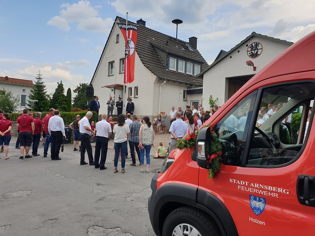 Holzen. In einem feierlichen Rahmen wurde am 27. Juli 2019 ein neues Mannschaftstransportfahrzeug durch Bürgermeister Ralf Paul Bittner an die Löschgruppe Holzen der Feuerwehr der Stadt Arnsberg übergeben. Neben den Mitgliedern der Ortsfeuerwehren aus Holzen und Herdringen nahmen auch zahlreiche Bürgerinnen und Bürger Holzens an der feierlichen Übergabe teil.
