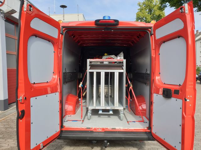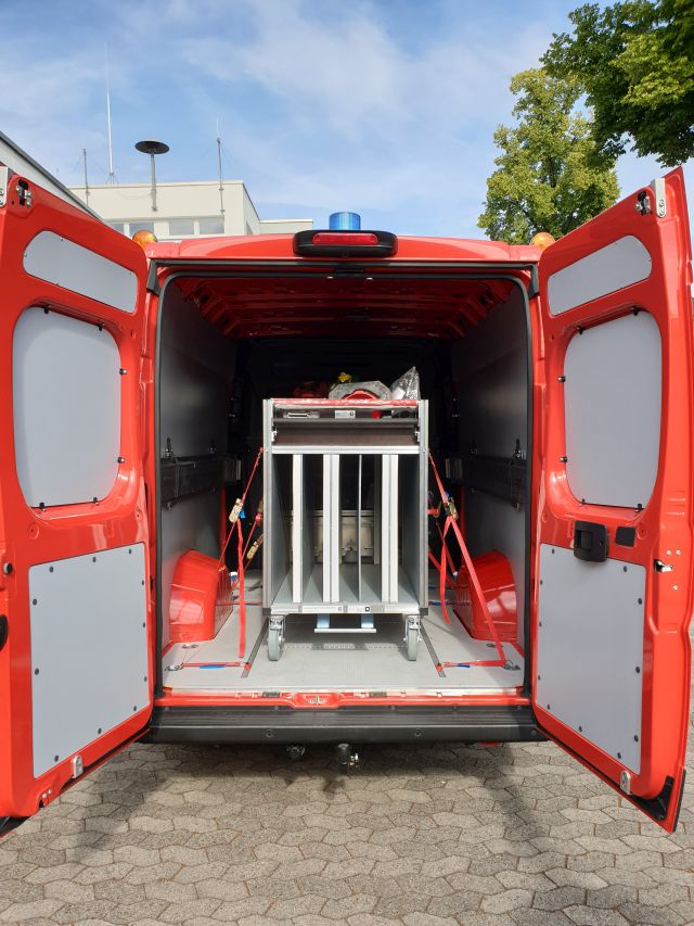 Neben den vorhandenen Sitzplätzen verfügt das neue Fahrzeuge über einen gesonderten Laderaum, welcher durch eine Wand vom eigentlichen Mannschaftsraum getrennt ist. In diesem Raum können jeweils zwei Rollcontainer mit unterschiedlicher Beladung untergebracht werden. Als ständige Standardbeladung wird zukünftig ein Rollcontainer mit einer Tragkraftspritze inklusive des erforderlichen Zubehörs sowie ein weiterer Container mit Schläuchen mitgeführt. Im Bedarfsfall kann die Beladung auf die jeweiligen Belange angepasst werden. Mit dieser Beschaffung ist eine große Flexibilität erreicht worden. Mit seiner Logistik-Komponente bildet das neue Mannschafttransportfahrzeug eine zweckmäßige Ergänzung zum ebenfalls bei der Löschgruppe in Holzen stationierten Tanklöschfahrzeug.