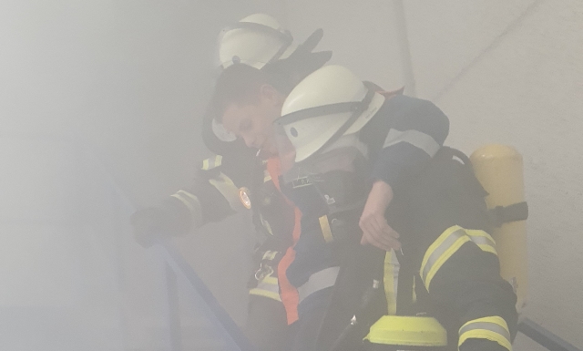 Mitarbeiter vor Ort informierten die Einheiten schnell darüber, dass noch drei Personen im Gebäude vermisst wurden. Aufgrund dieser Information wurde eine weitere Erhöhung des Alarmstichworts auf F4Y über die Übungsleitstelle veranlasst.