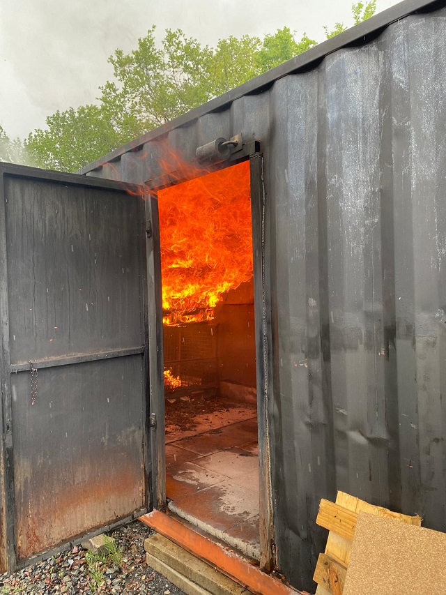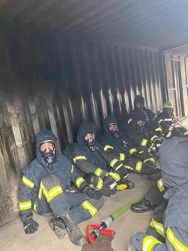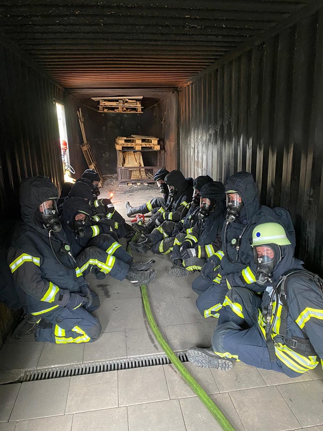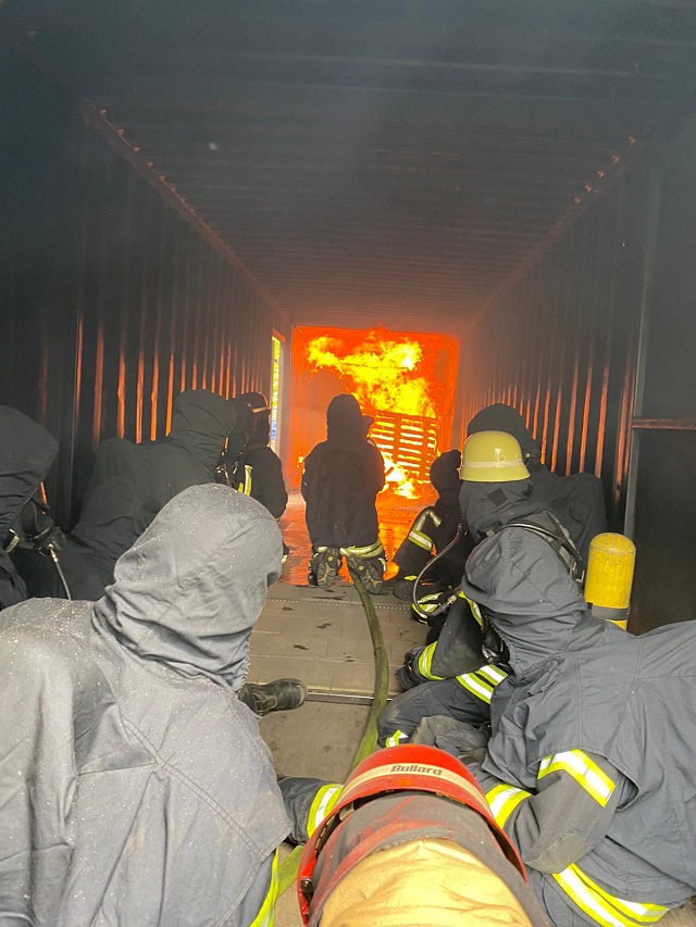 Am zweiten Tag wurde das Erlernte im Brandcontainer praxisnah umgesetzt. Hierbei wurden neben dem sicheren Eindringen in ein brennendes Gebäude oder ein verrauchtes Zimmer auch aktuelle Löschtechniken und Taktiken geübt.
