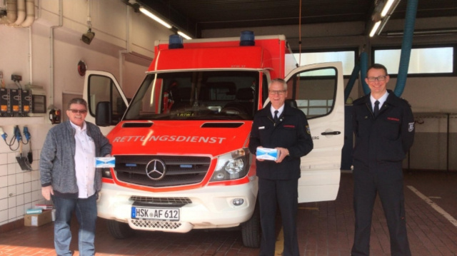 Stadtgebiet. Am 27. März 2020 wurden der Feuerwehr Arnsberg durch die Seniorenbegleitung El Hadri 500 Mundschutzmasken gespendet. Diese Masken kommen aus einer Lieferung an die Firma S & B Beschläge GmbH in Sundern-Amecke. Die Verbindung zu S & B kam durch die Leiterin der Seniorenbegleitung, Frau Amal El Hadri, zustande. Diese bekamen von einem Partner aus China 10.000 dieser Schutzmasken geliefert und hat diese an Hausärzte, Notfallambulanzen, Altenheime und Seniorenbegleitungen gespendet. Nachdem die Seniorenbegleitung El Hadri ihre Mitarbeiter und Kunden ausgestattet hatte, waren noch weitere Masken übrig. Somit kam die Idee auf Bürgermeister Bittner zuzugehen und das Angebot an kostenlosen Masken zu unterbreiten. Dieser antwortete sofort und so konnte durch Herrn Gerhard Wiedemann die Lieferung an die Feuerwehr zeitnah übergeben werden.