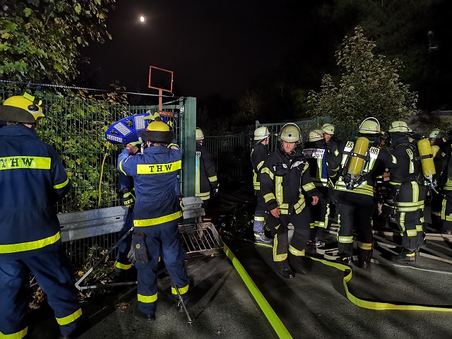 Unterstützung bei diesem Einsatz erhielt die Feuerwehr von den Fachgruppen Notversorgung und Bergung des THW Ortsverbandes Arnsberg, welche zufällig an der Riggenweide am üben waren. Das THW hatte nicht nur den Brand rechtzeitig entdeckt und gemeldet, was schlimmeres verhinderte. Die Kameraden halfen auch bei der Ausleuchtung der Einsatzstelle. Für die professionelle Unterstützung bedankt sich die Feuerwehr.