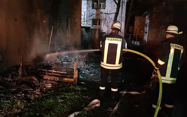 In der Nacht zu Donnerstag wurde die Feuerwehr unter dem Stichwort “Entstehungsbrand im Freien” zu einem Gebäude in der Mühlenstraße alarmiert. Bewohner hatten von der Schloßstraße aus Feuerschein bemerkt und den Notruf gewählt. Bei Eintreffen der ersten Kräfte stellte sich heraus, dass ein größerer Berg Müll brannte. Die Flammen hatten sich schon an der Hausfassade bis zum Dach “hochgefressen”, so dass der Einsatzleiter Sirenenalarm für den Stadtteil Arnsberg auslöste. Der Dachstuhl wurde von innen und vom Korb der Drehleiter aus von außen gelöscht. Das Dachgeschoss wurde fortlaufend mit einer Wärmebildkamera nach weiteren Brandnestern kontrolliert. Für den Bewohner des Hauses bestand zu keiner Zeit Gefahr, der Mann blieb unverletzt.