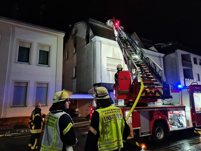 Neheim. Samstagmorgen gegen 4:00 Uhr wurde die Feuerwehr zu einem Dachstuhlbrand in die Stembergstraße alarmiert. Vor Ort bestätigte sich der Brand, zusätzlich wurde noch eine Person aus der Brandwohnung vermisst. Hieraufhin wurde das Alarmstichwort erhöht. Zusätzlich zum Löschzug Neheim und den hauptamtlichen Wachen wurde die Löschgruppe Voßwinkel und der Fernmeldedienst alarmiert.