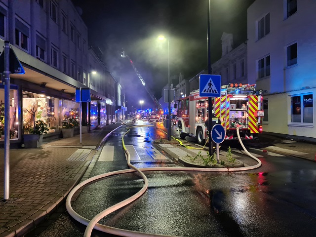 Am 02.10.2021 um 04.03 Uhr wurde ein Wohnungsbrand in einem Mehrfamilienhaus in Arnsberg-Neheim gemeldet. In dem Haus befindet sich im Erdgeschoss ein Gewerbebetrieb. Im Obergeschoss befinden sich zwei Wohnungen. Bei Eintreffen der Feuerwehr und der Polizei brannte eine Wohnung im Obergeschoss im vollem Ausmaß. Personen befanden sich nicht mehr im Haus. Gegen 06.00 Uhr war der Brand durch die Feuerwehr abgelöscht. Der Wohnungsinhaber wurde mit einer Rauchvergiftung in ein Krankenhaus verbracht. Es besteht keine Lebensgefahr. Die Stembergstraße musste wegen der Löscharbeiten und wegen der Gefahr herabfallender Dachstuhlteile zeitweise voll gesperrt werden. Die Brandursache ist bis jetzt unklar. Die Kriminalpolizei ermittelt. Die Wohnungen im Obergeschoss sowie der Gewerbebetrieb im Erdgeschoss sind zur Zeit nicht nutzbar. Die Höhe des Gebäudeschadens ist bis jetzt ebenfalls unklar. 2/10 Stra.