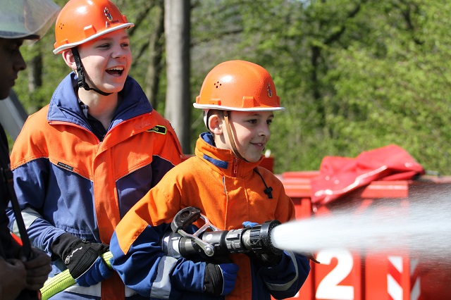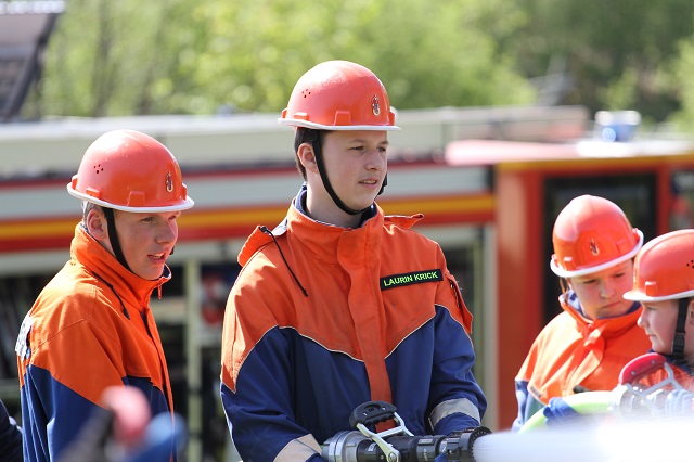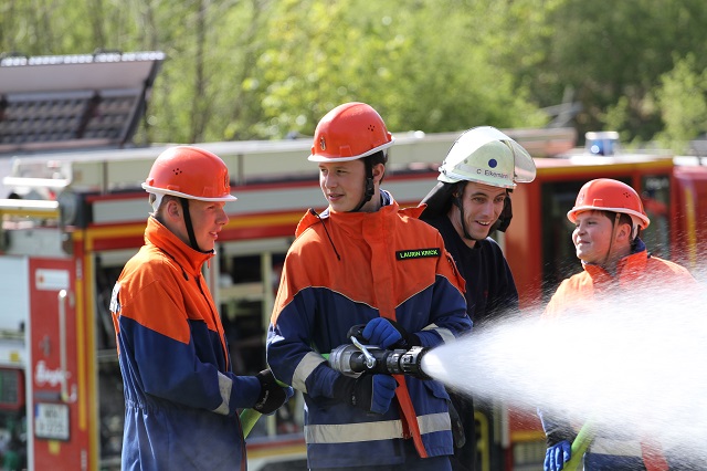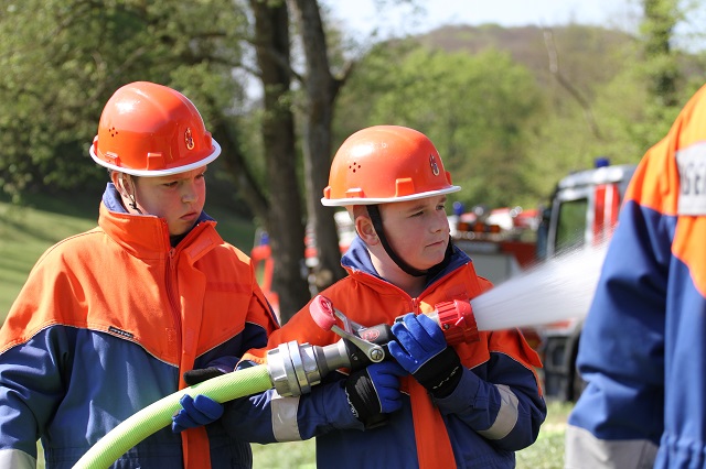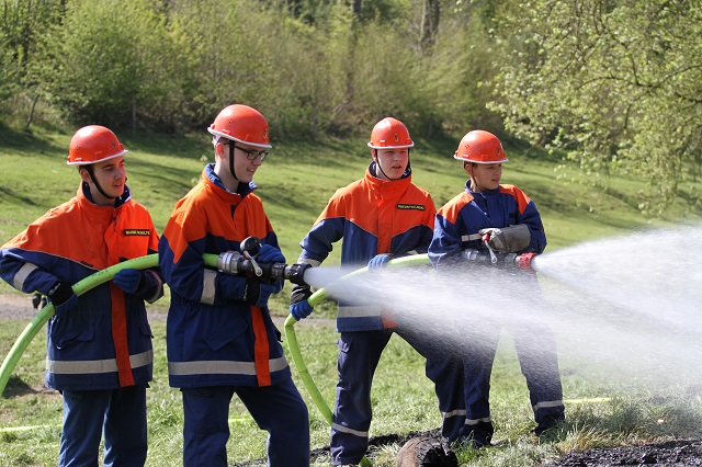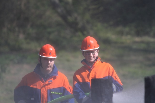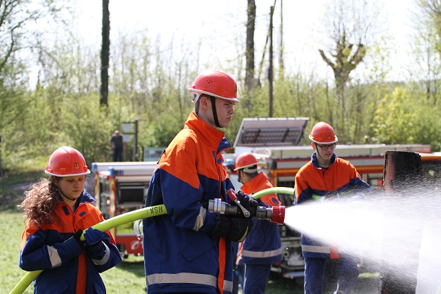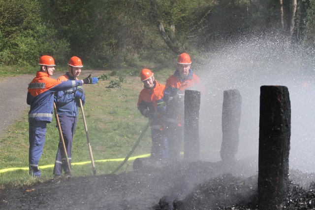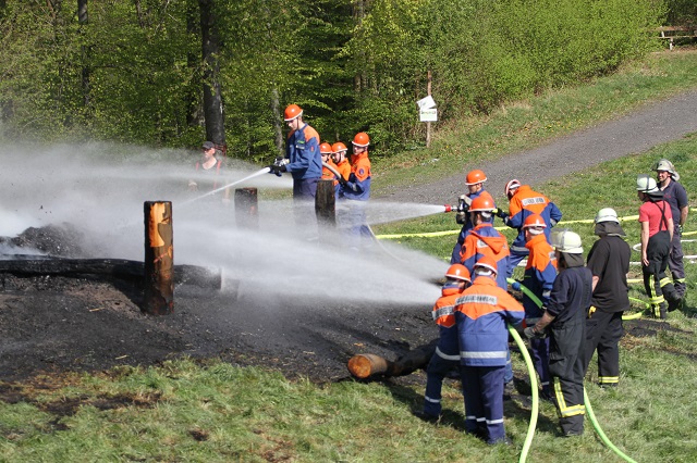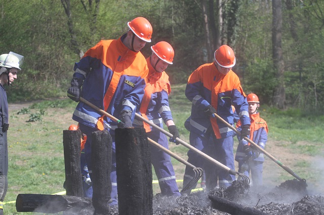 Zum wiederholten Male stellte der Heimatbund die Reste des Osterfeuers zur Verfügung. Die Jugendlichen konnten in sicherer Atmosphäre üben, wie Flächen- und Waldbrände bekämpft werden. In Zeiten hoher Waldbrandgefahren ein sinnvolles Wissen.