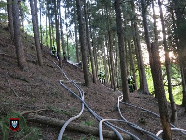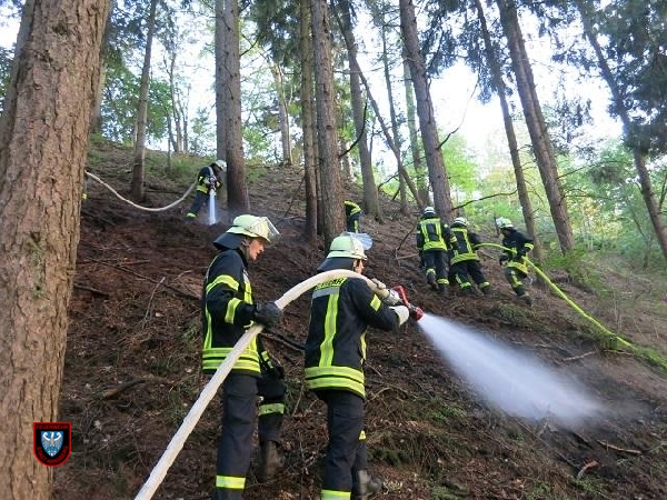 Diesesmal brannten etwa 100 Quadratmeter Böschung, das Feuer hatte bereits auf mehrere Bäume übergegriffen.