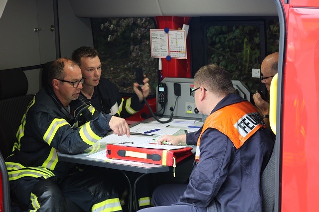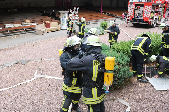 Herdringen/Holzen. Am Samstag, den 22.09.2018 wurden die Kräfte der Feuerwehr Herdringen und Holzen zu einem Übungseinsatz zur Freilichtbühne in Herdringen alarmiert. Die Lage: Zwei Personen sind nach der Explosion einer Campinggaskartusche in einem Gebäude vermisst. Die Einheiten der Löschgruppe Herdringen begannen nach dem Eintreffen umgehend mit der Menschenrettung. Ziel war es, das Gebäude schnellstmöglich mit mehreren Atemschutztrupps zu durchsuchen. Parallel dazu wurde eine Wasserversorgung aus einer nahegelegenen Zisterne aufgebaut, um dadurch eine sichere Löschwasserversorgung bereitzuhalten. Nach kurzer Erkundung durch Einsatzleiter Michael Wenzel wurden Einsatzabschnitte gebildet, so dass die Kräfte bestmöglich und strukturiert eingesetzt werden konnten. Schnell war klar, dass sich nur eine Person im Gebäude aufgehalten hat, diese konnte umgehend gerettet werden. Dann spitzte sich die Lage zu. Die zweite Person war verletzt in einem Tunnel aufgefunden worden und konnte sich nicht mehr aus eigener Kraft befreien. Die Löschgruppe Holzen führte hierzu eine Technische Rettung durch eine Schachtöffnung durch, die Person konnte schnell ins Freie gebracht werden. Dies war eine besondere Herausforderung der eingesetzten Kräfte. Nach einer Stunde war Einsatzende. Alle Übungsziele wurden erreicht und abgearbeitet. Basislöschzugführer Christian Schulte war sichtlich begeistert von der hervorragenden Zusammenarbeit innerhalb des Basislöschzuges 4 (Löschgruppen Herdringen und Holzen). Er bedankte sich bei seinen Kameraden für die gelungene Übung und bei den Helfern der Freilichtbühne Herdringen für die tolle Unterstützung. Christian Schulte hatte die Übung ausgearbeitet und dankte seinen Unterstützern Matthias und Alexander Kückenhoff für die geleistete Arbeit. Anschließend wünschte er allen Kameraden ein schönes Wochenende und „Gut Wehr“.
