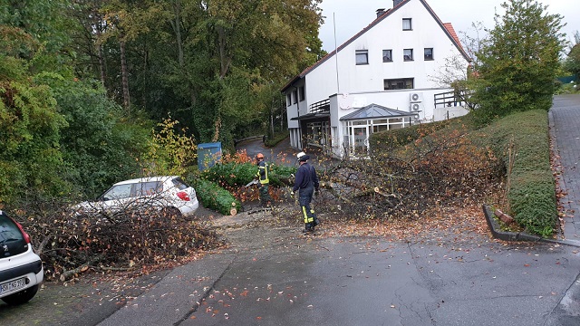 Am Mittwochmorgen wurde die Wache Arnsberg zu einem Sturmschaden in die Straße “Auf dem Bruch“ in Neheim alarmiert. Ein Baum versperrte die Fahrbahn, zum Glück gab es keinen Personenschaden, die Einsatzkräfte entfernten den herabgestürzten Baum mithilfe einer Motorsäge.