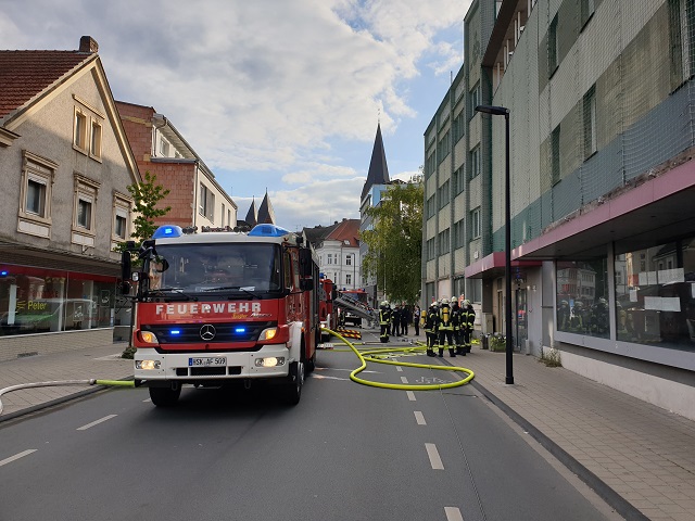 Am Freitagabend gegen 18:43 Uhr wurden die Kräfte der Feuerwehr zu einem Dachstuhlbrand zur Möhnestraße gerufen. In einem leerstehenden Gebäudeteil eines Geschäftshauses, wurde eine starke Rauchentwicklung aus dem Dachbereich gemeldet. Beim eintreffen der Feuerwehr, drang schwarzer Rauch aus dem Eingangsbereich. Ein Trupp unter schwerem Atemschutz, ging zur Menschenrettung/ Brandbekämpfung ins Gebäude vor. Parallel wurde eine Wasserversorgung aufgebaut und von außen mit einer Drehleiter die einzelnen Ebenen des Gebäudes kontrolliert. Schnell konnte Entwarnung gegeben werden, im Erdgeschoss war Unrat in Brand geraten. Mit einem C- Rohr wurde das Feuer abgelöscht und das Gebäude weiter durchsucht. Zum Glück befanden sich keine Personen im Gebäude. Mehre Bereiche waren stark verraucht und wurden mit einem Hochleistungslüfter der Feuerwehr vom Brandrauch befreit. Nach gut einer Stunde, konnten die Einsatzkräfte wieder in Ihre Standorte einrücken.
