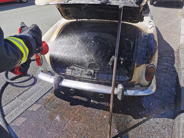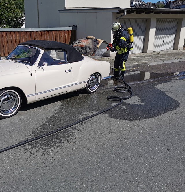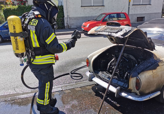 Am Mittwoch, den 24.06.2020 wurde die Wache Arnsberg um 15:15 Uhr zu einem PKW- Brand in die Straße Unterm Römberge in Arnsberg alarmiert. Mit einem sogenannten Schnellangriff, unter schwerem Atemschutz, löschten die Einsatzkräfte den Motorraum des Fahrzeuges ab. Ein Vorteil war, dass in dem Oldtimer weniger Plastik verbaut war, dadurch war das Feuer schnell unter Kontrolle. Anschließend wurde das Fahrzeug mit einer Wärmebildkamera kontrolliert.
