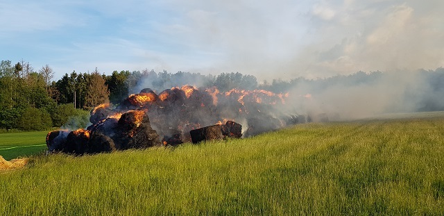 Somit konnte zuerst die Wiese, auf dem die Ballen gelagert waren gekühlt werden, um ein weiteres Ausbreiten des Feuers zu verhindern. Weiterhin wurde ein Bagger organisiert, der die abgelöschten Strohballen auseinanderzog um auch die immer wieder aufflackerndenGlutnester zu löschen. Nach fast 13 Stunden war dann auch für die letzten der rund 85 Einsatzkräfte der Einsatz beendet.