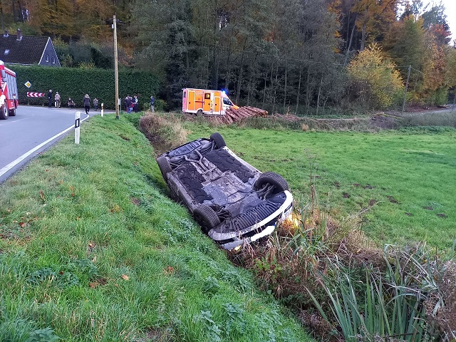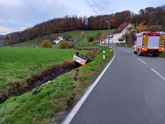 Holzen. Am Samstagnachmittag kam es zu einem Unfall im Ortsteil Holzen. Ein PKW lag in einem Graben auf dem Dach.